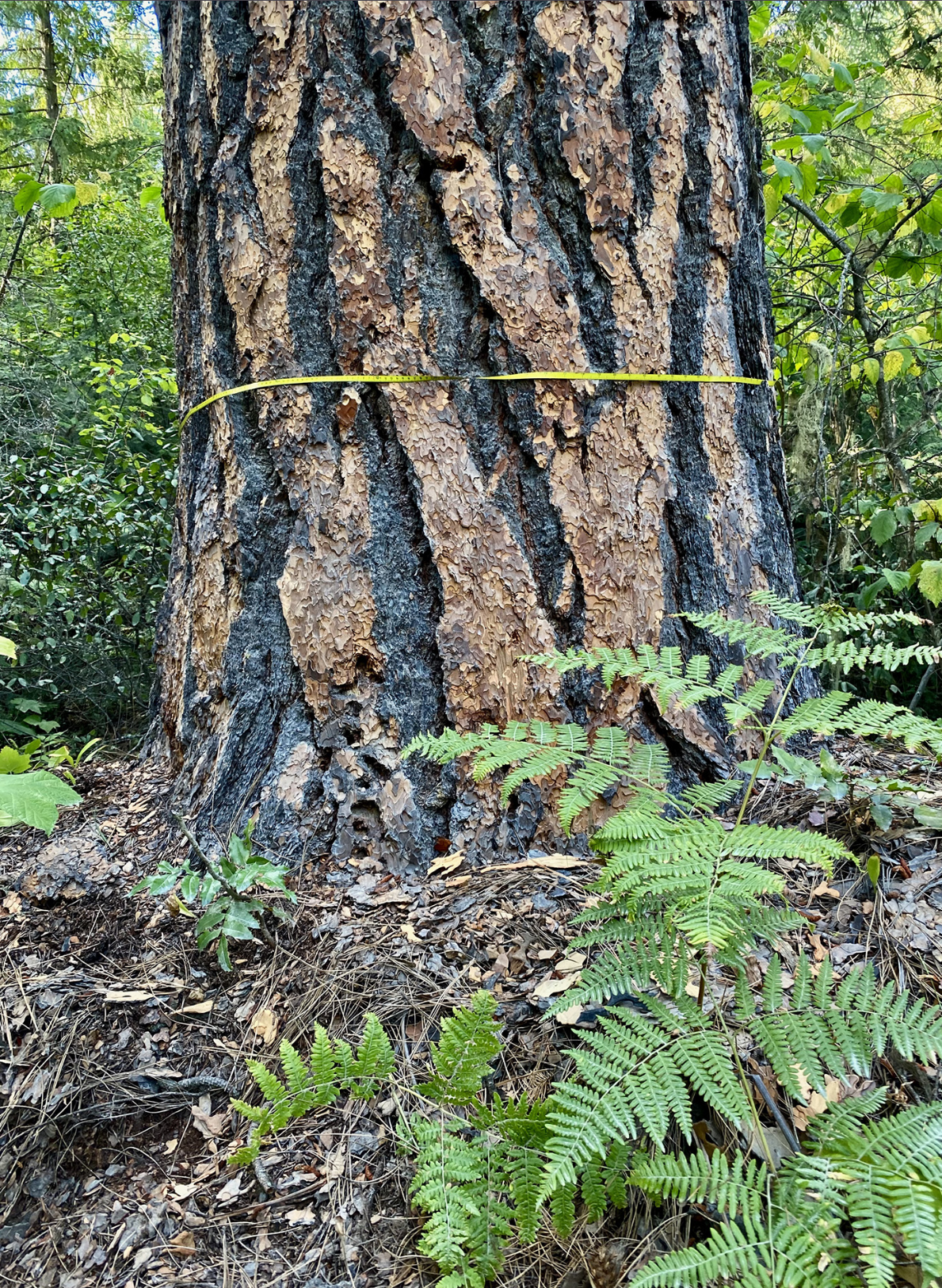 Tree #6 Pinus ponderosa (Ponderosa pine)Year Measured: 2022Spread (Meters): 16Height (Meters): 52Location: Old Growth Trail Navigate to Tree #6